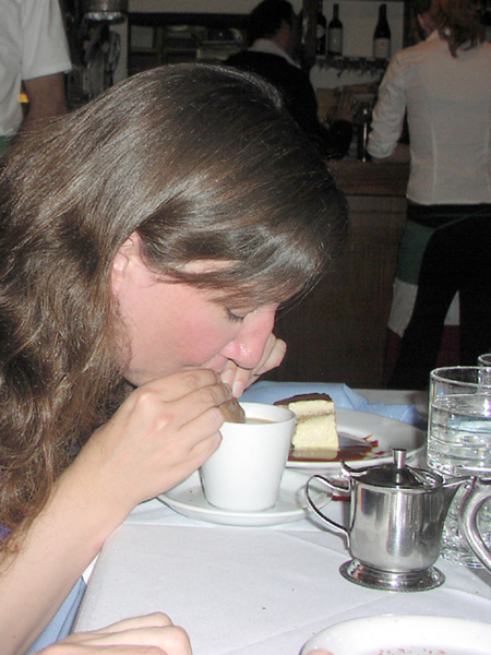 第二步,將一點點TimTam(洞口的地方)放到咖啡裡,然後開始用力一吸
