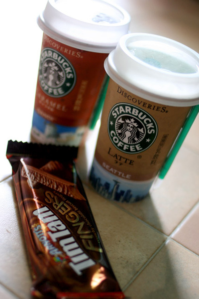 咖啡的溫度盡量不可以太高唷,不然TIMTAM很容易給它溶化在咖啡裡的!